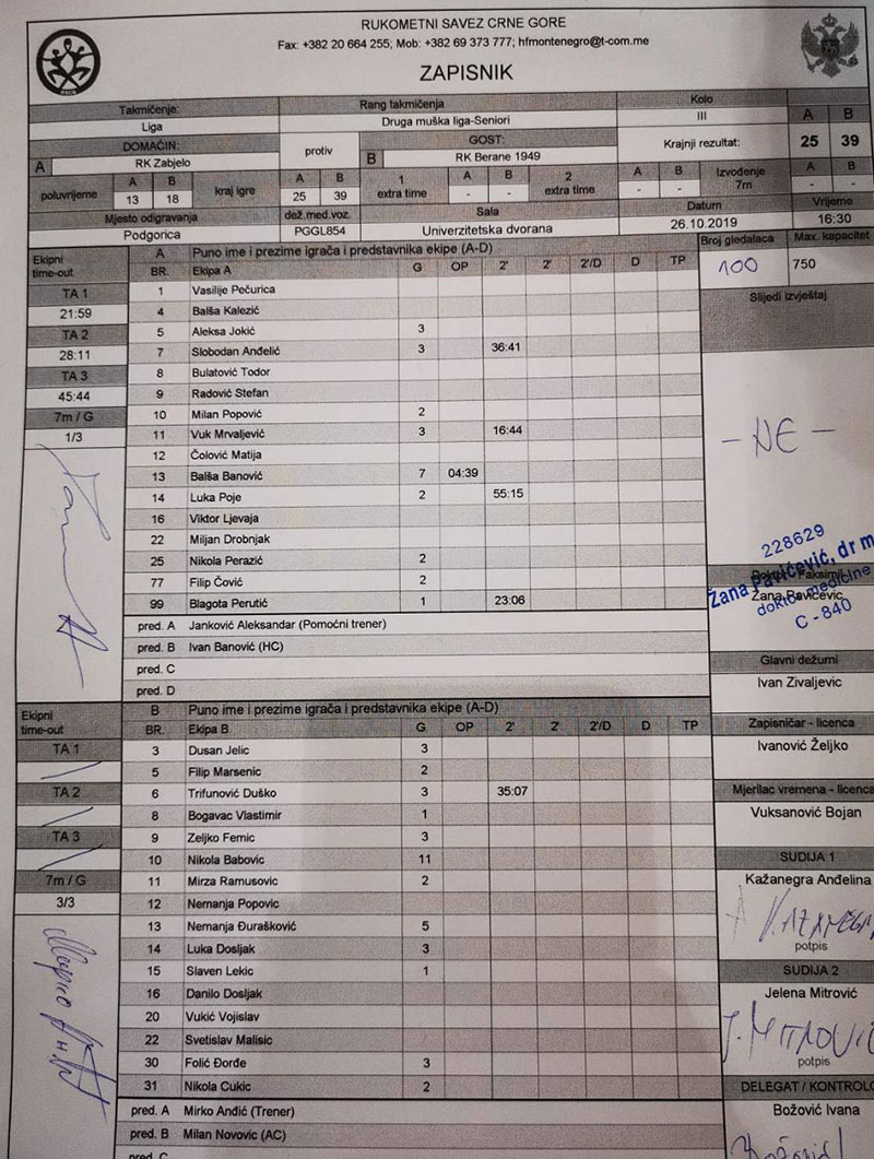 U glavnom gradu je još ubjedljivija bila ekipa Berane 1949, koja je savladala Zabjelo 39:25 (18:13). Nikola Babović je bio najefikasniji u pobjedničkom timu sa 11 golova, Balša Banović je za domaće dao sedam.
