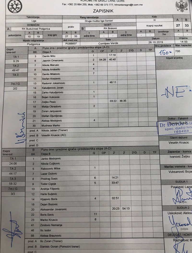 U prvom meču 3. kola Druge lige za rukometaše, Brskovo je savladalo Budućnost u Podgorici 33:27 (19:10).