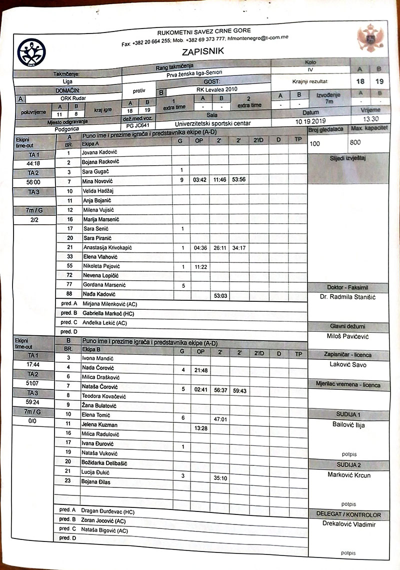 Rudar je u 54. minutu vodi 18:15, ali nakon toga, u kratkom razmaku, domaće su dobile dva isključenja, što je poguralo gošće da postignu dva vezana gola.